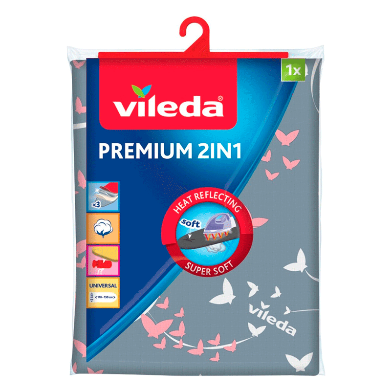 Покрытие для гладильной доски Vileda Premium имеет металлизированную и теплоотражающую поверхность, для значительно быстрого времени глажения, с дополнительной мягкой поверхностью.