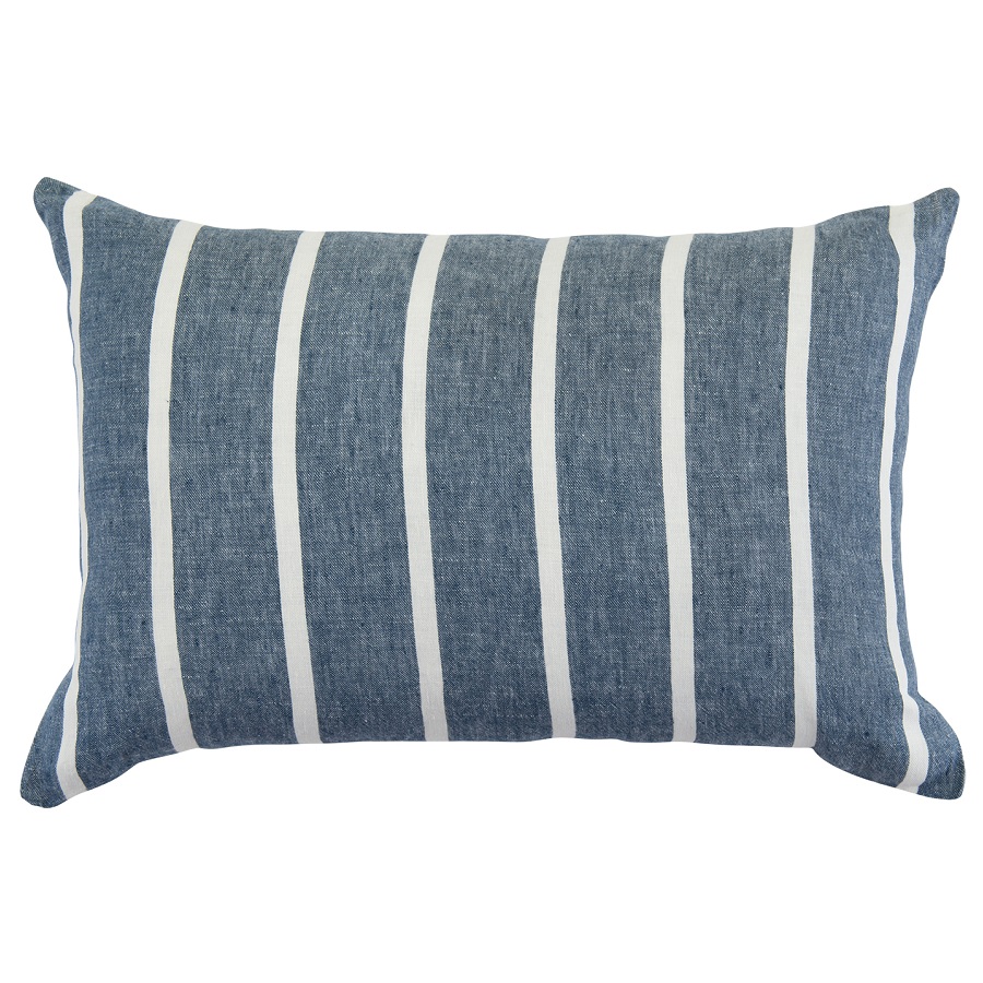 Чехол на декоративную подушку в полоску темно-синего цвета из коллекции Essential добавит ярких красок и настроения в ваш интерьер. Он выполнен изо льна, гипоаллергенного материала, который прост в уходе и долгое время сохраняет презентабельный внешний вид. Практичный чехол темно-синего оттенка впишется в любой интерьер и будет хорошо сочетаться с остальными подушками. Модель застегивается на потайную молнию.