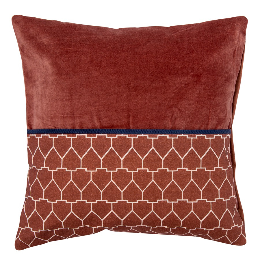 Чехол на подушку из хлопкового бархата с геометрическим принтом терракотового цвета из коллекции Ethnic, 45х45 см, Tkano