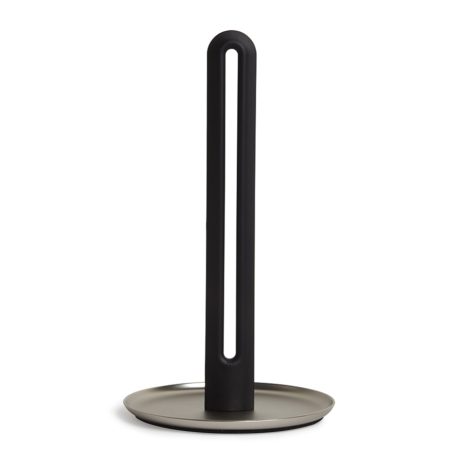 Держатель не ездит по столешнице благодаря утяжеленному основанию. Покрытый каучуком стержень позволит легко отрывать полотенце одной рукой, а верхушка в виде петли удобна для переноски.