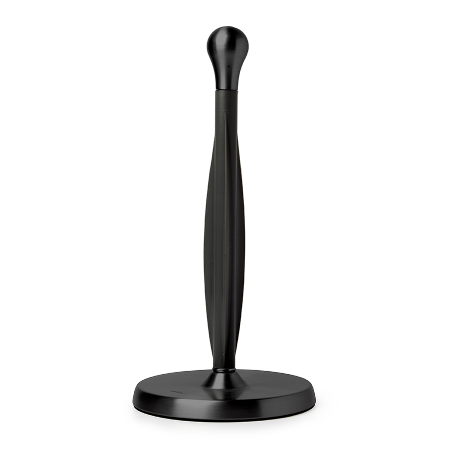 Изогнутый резиновый стержень отлично удерживает рулон бумажного полотенца, позволяя оторвать полотенце одной рукой. Металлическое основание обеспечивает устойчивость держателя во время использования, мягкое покрытие предотвращает скольжение и повреждение столешницы.