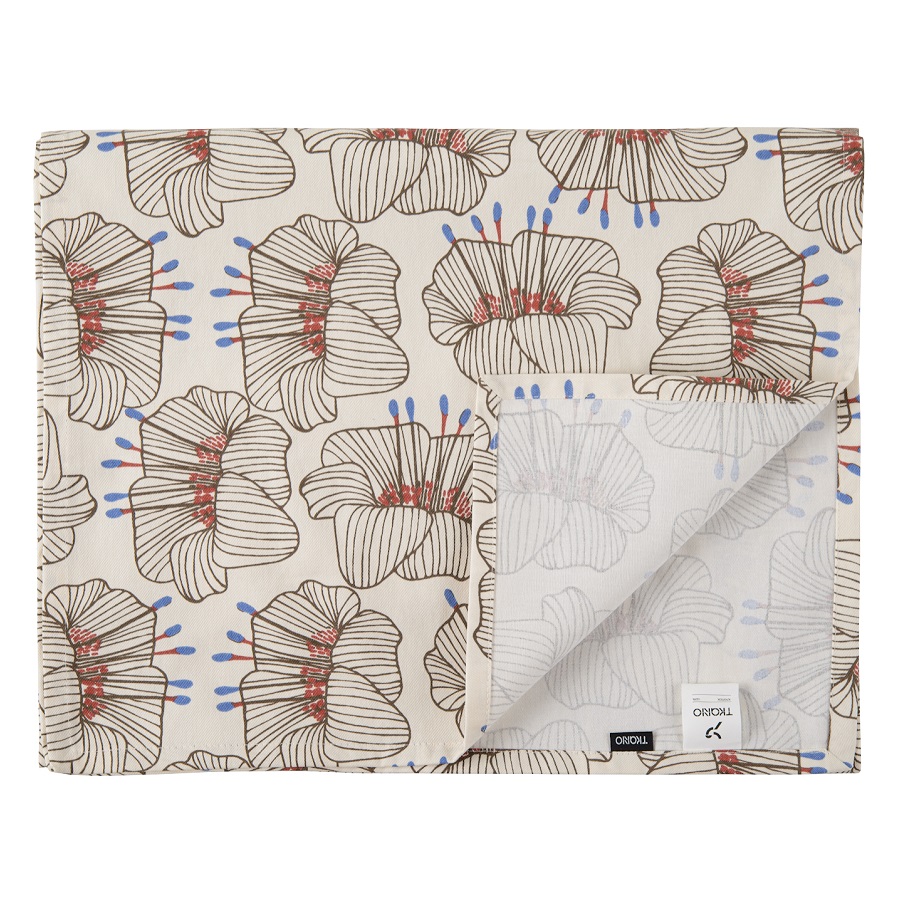 Дорожка на стол из хлопка молочного цвета с принтом Цветы из коллекции Prairie, 45х150 см, Tkano