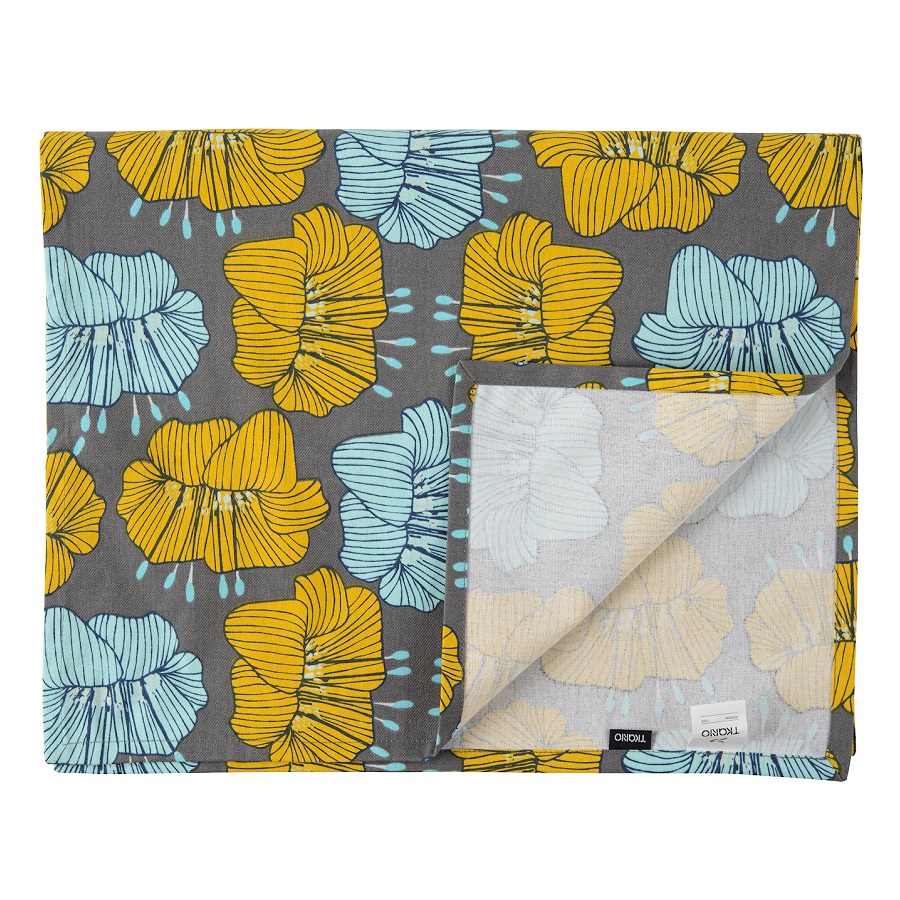 Дорожка на стол из хлопка серого цвета с принтом Цветы из коллекции Prairie, 45х150 см, Tkano