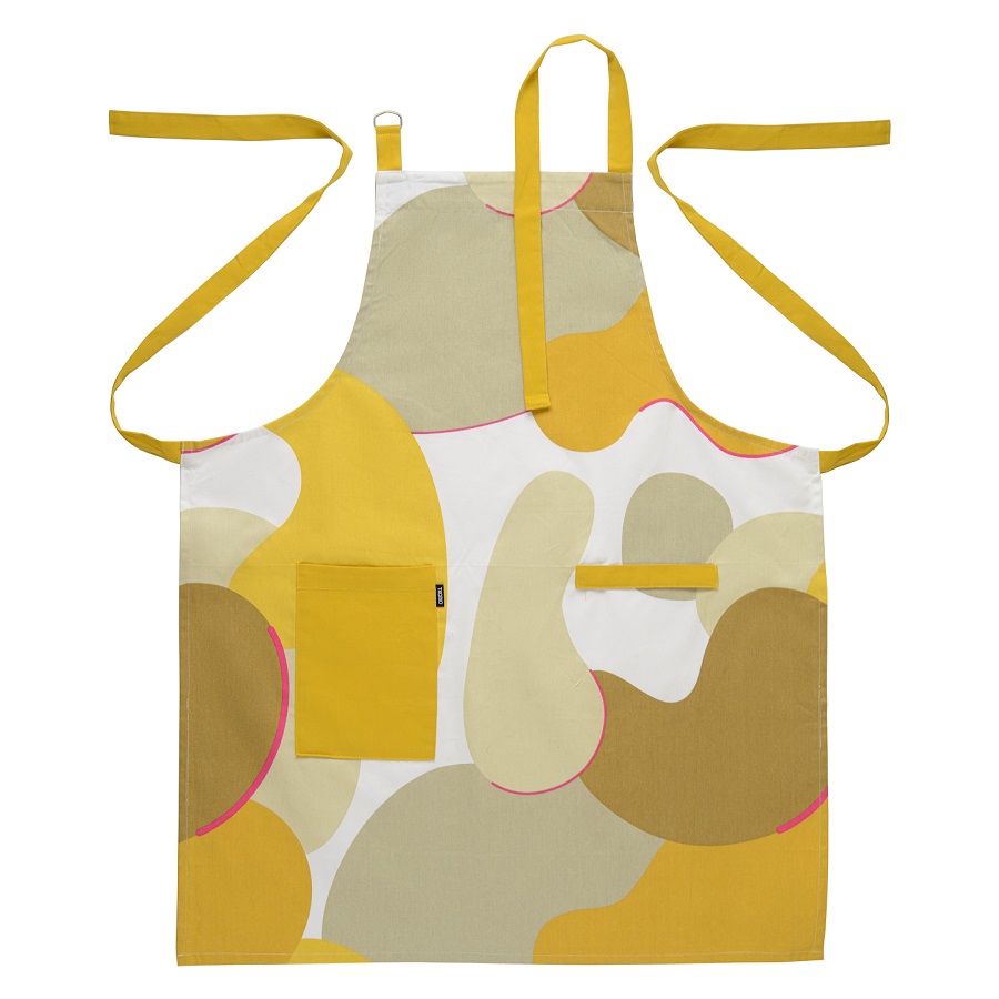 Фартук из хлопка горчичного цвета с авторским принтом из коллекции Freak Fruit защитит одежду во время готовки и работы на кухне. Модель с накладным карманом и клапаном для кухонного полотенца, бретель нагрудника регулируется по длине. Принт создан Димой Логиновым - предметным дизайнером, известным в России и далеко за ее пределами. Абстрактная графика и сочетание сложных тонов — смелое решение для тех, кто любит экспериментировать с яркими красками и принтами в интерьере.