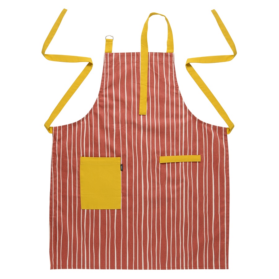 Фартук из хлопка терракотового цвета с принтом Полоски из коллекции Prairie защитит одежду во время готовки и работы на кухне. Модель с накладным карманом и клапаном для кухонного полотенца, бретель нагрудника регулируется по длине. Дизайн фартука со светлыми полосками органично впишется в интерьер любой современной кухни и будет сочетатьмя с другим кухонным текстилем из этой же серии. Материал – экологически чистый хлопок. Тип плетения: твил. Плотность ткани - 215GSM.