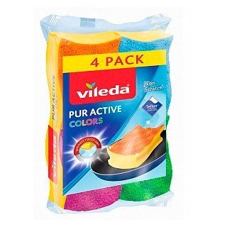Губка ПУР Колорс, высокий поролон, 4 шт, Vileda