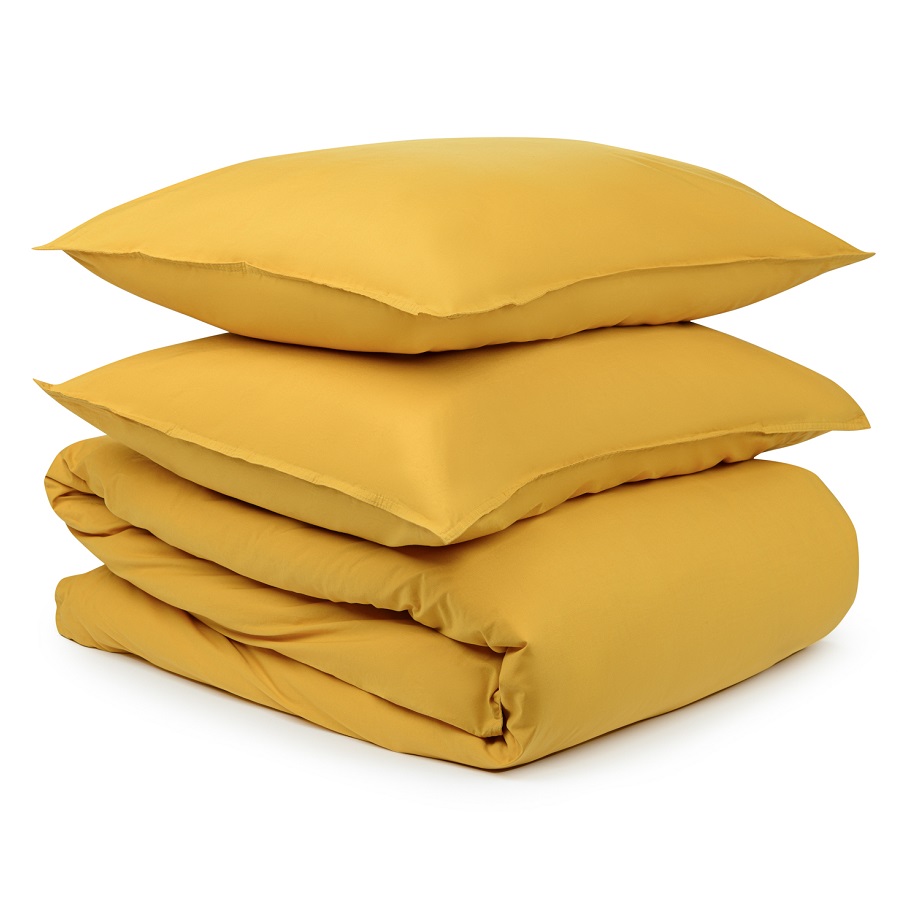 Комплект постельного белья двуспальный горчичного цвета из органического стираного хлопка из коллекции Essential, Tkano