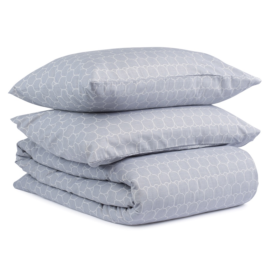 В комплекте: пододеяльник 150х200 см, застегивающийся на пуговицы, и две наволочки 50х70 см с системой закрытия клапан.