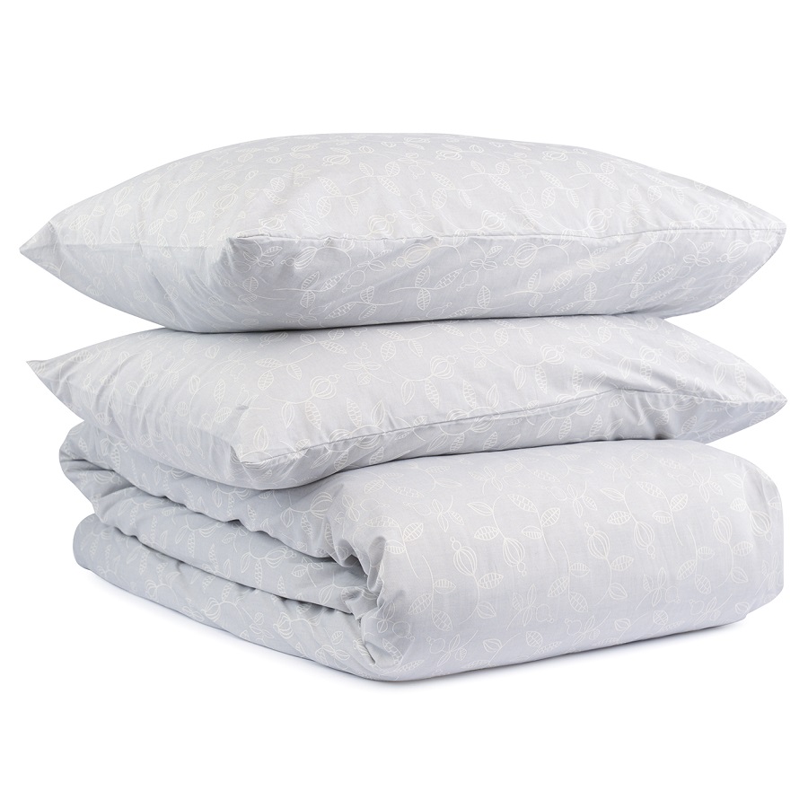 В комплекте: пододеяльник 200х220 см, застегивающийся на пуговицы, и две наволочки 50х70 см с системой закрытия клапан.