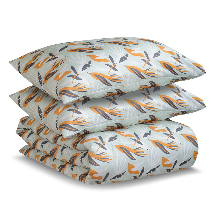 Комплект постельного белья из сатина темно-серого цвета в принтом Birds of Nile из коллекции Wild, 150х200 см, Tkano