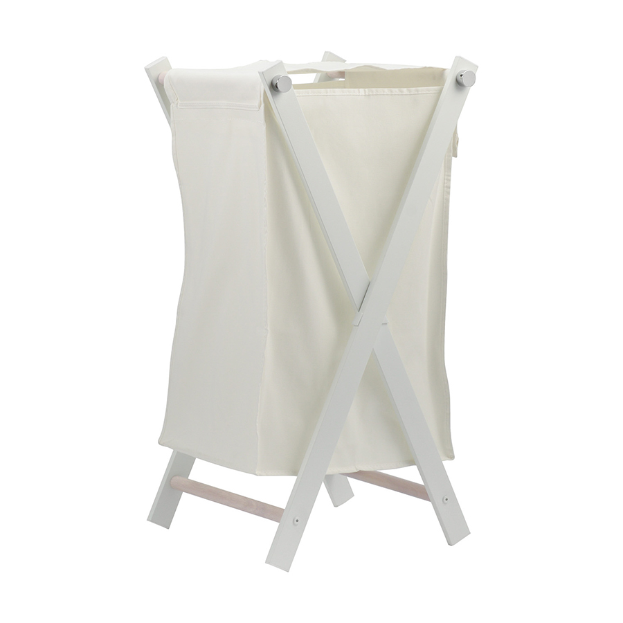 Удобная корзина Jarrod – практичное решение для хранения грязного белья перед стиркой. Сумка изготавливается из прочного и влагостойкого материала поликанваса, который не мнется, не выцветает, отличается продолжительным сроком службы. Каркас изделия выполнен из стальных труб и окрашен белой краской, защищающей металл от коррозии. Перекладины из каучукового дерева надежно скрепляют все элементы между собой и придают конструкции хорошую устойчивость. Пустая корзина легко и быстро складывается, экономя место в помещении.