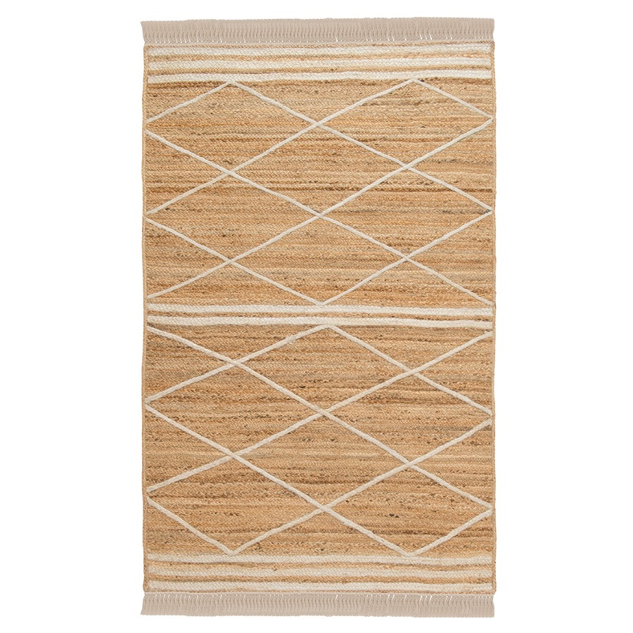 Ковер из джута бежевого цвета с геометрическим рисунком и с бахромой из коллекции Ethnic, 120x180 см, Tkano