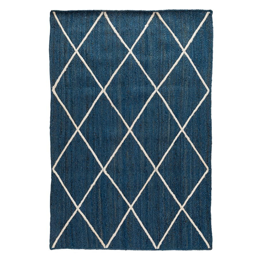 Ковер из джута темно-синего цвета с геометрическим рисунком из коллекции Ethnic, 120x180 см, Tkano
