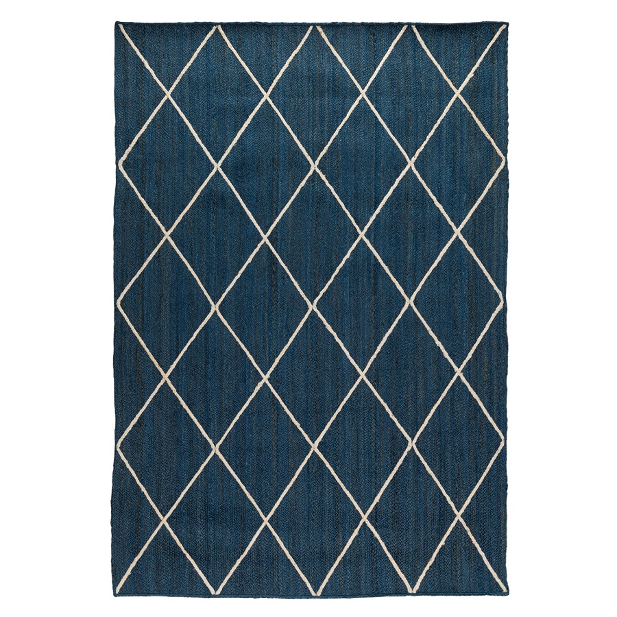 Ковер из джута темно-синего цвета с геометрическим рисунком из коллекции Ethnic, 160x230 см, Tkano