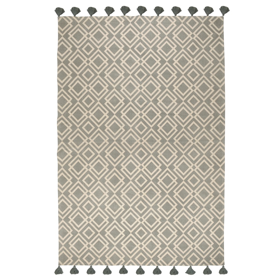 Ковер из хлопка с этническим узором Ромбы и кисточками из коллекции Ethnic универсальной расцветки впишется практически в любой интерьер и станет необычным акцентом. Оригинальное изделие, выполненное из натуральных материалов, будет уместно в гостиной или в спальне.