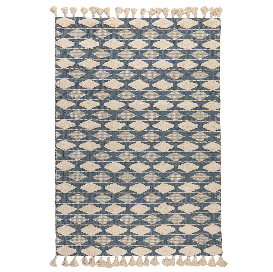 Ковер из хлопка синего цвета Argyle из коллекции Ethnic, 70х160 см, Tkano