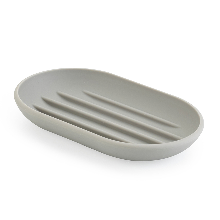 Мыльница, изготовленная из приятного на ощупь пластика, не скользит, а брать из ее мыло удобнее благодаря специальным желобкам на донышке.