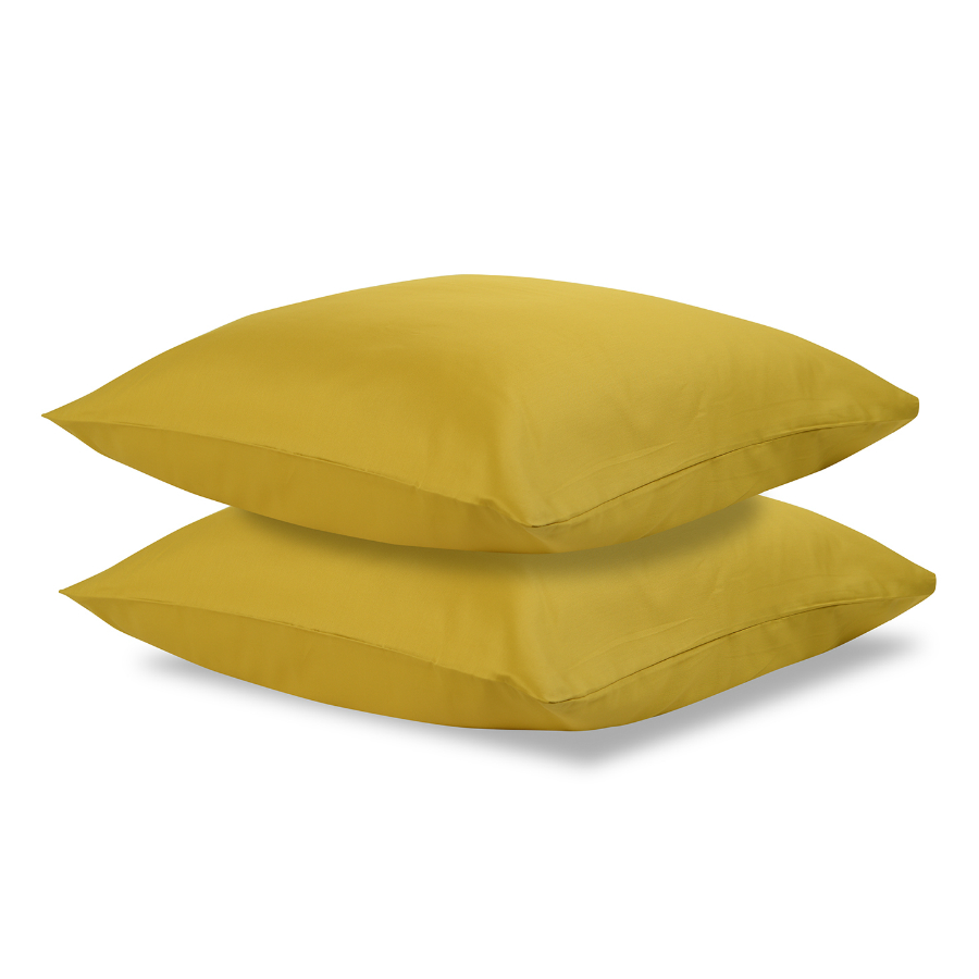 Комплект из двух однотонных наволочек горчичного цвета выполнен из гладкого хлопкового сатина плотностью 210ТС. Прочный, приятный на ощупь материал с характерным блеском не электризуется и не вызывает аллергию