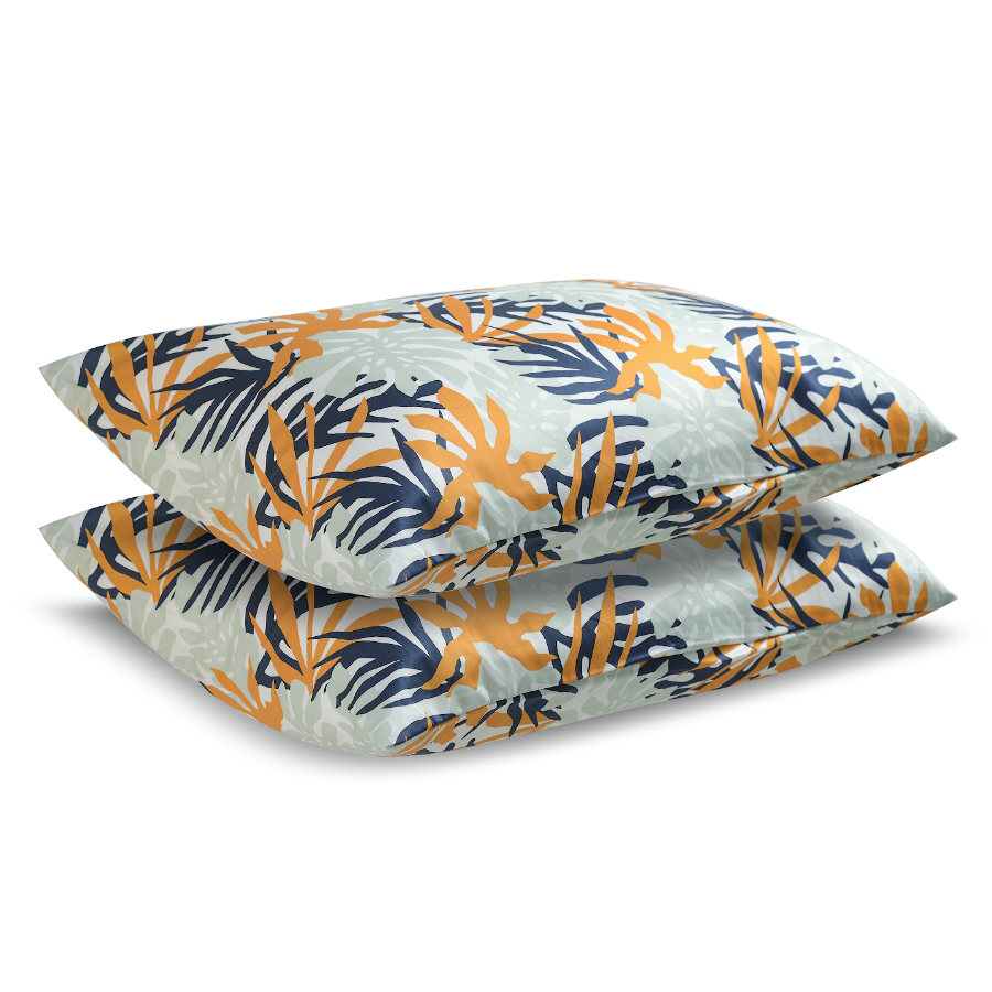Комплект наволочек с флористическим принтом Leaves станет ярким акцентом в вашей спальне. Гладкий, приятный на ощупь материал плотностью 210 ТС отличается особым способом пряжи – нити переплетаются в скрученном виде, что придает ткани дополнительную прочность.