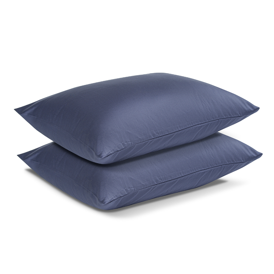 Комплект из двух однотонных наволочек насыщенного синего цвета выполнен из гладкого хлопкового сатина. Прочный, приятный на ощупь материал с характерным блеском не электризуется и не вызывает аллергию. Плотность материала - 210ТС.