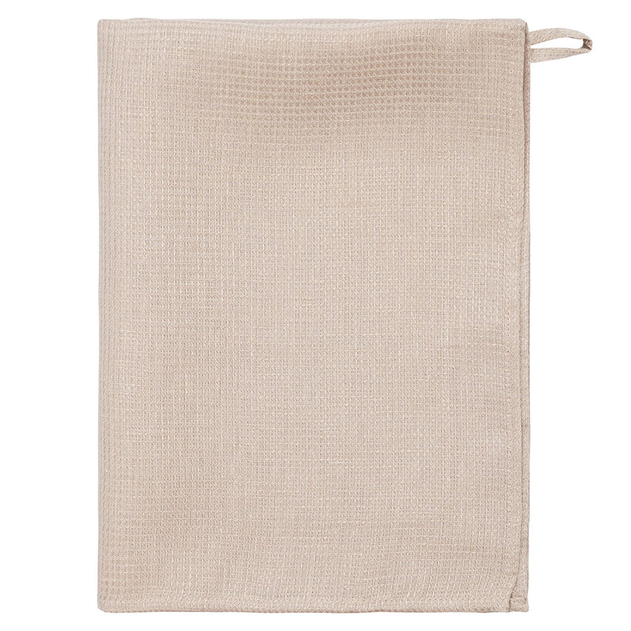 Набор из двух вафельных полотенец бежевого цвета для кухни из коллекции Essential – отличный вариант для ценителей спокойных природных оттенков. Изделия изготовлены из умягченного льна, который хорошо впитывает влагу и быстро сохнет. Как известно, лен не только прекрасно смотрится в интерьере, но и предотвращает развитие бактерий, что особенно актуально для кухни и столовой. Полотенце можно повесить на крючок, благодаря удобной петельке.