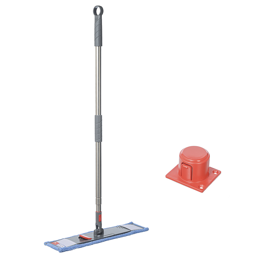 В комплект входит: телескопическая ручка 160 см, насадка-платформа, насадка-тряпка из микрофибры, вешалка для швабры. Высококачественная микрофибра состоит на 88%, из полиэстера и на 12%, из полиамида. Материал быстро поглощает воду, пыль и жидкие загрязнения, не оставляя разводов и следов. Швабра дополнена телескопической ручкой из нержавеющей стали длиной 160 см. Вешалка выполнена из прочного пластика высокого качества. Изделие легко крепится к стене. На ручках уборочного инвентаря расположены специальные петли. По бокам вешалка дополнена защелкивающимися вставками, которые позволяют швабрам, метелками, скребкам и щеткам надежно фиксироваться в одном положении при хранении.