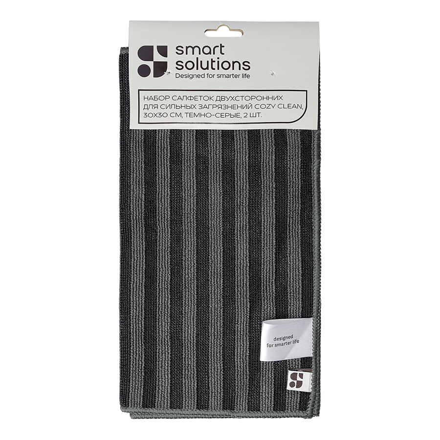 Набор салфеток двухсторонних для сильных загрязнений Cozy Clean, 30х30 см, темно-серые, 2 шт., Smart Solutions