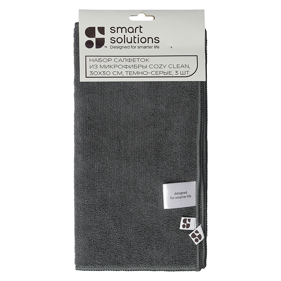Набор салфеток из микрофибры Cozy Clean, 30х30 см, темно-серые, 3 шт., Smart Solutions