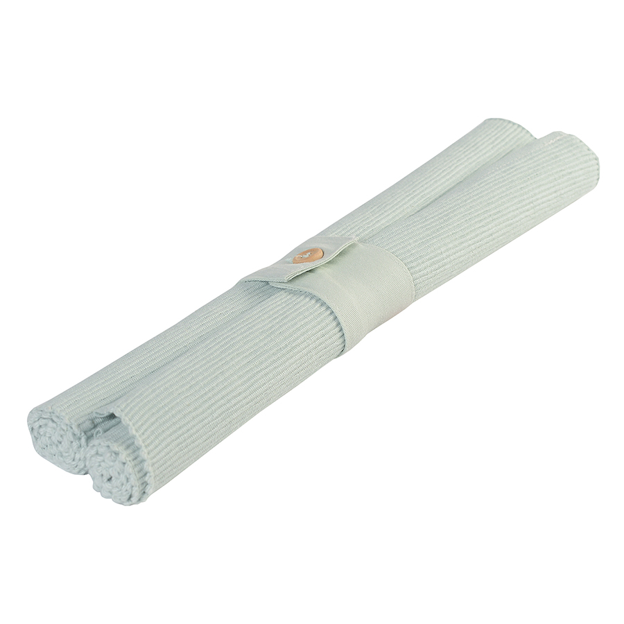 Комплект из двух салфеток под приборы выполнен из прочного длинноволокнистого хлопка. Такой материал хорошо впитывает влагу, не электризуется и выглядит новым даже после множества стирок. Набор представлен в мятном оттенке. Плотность ткани - 600GSM