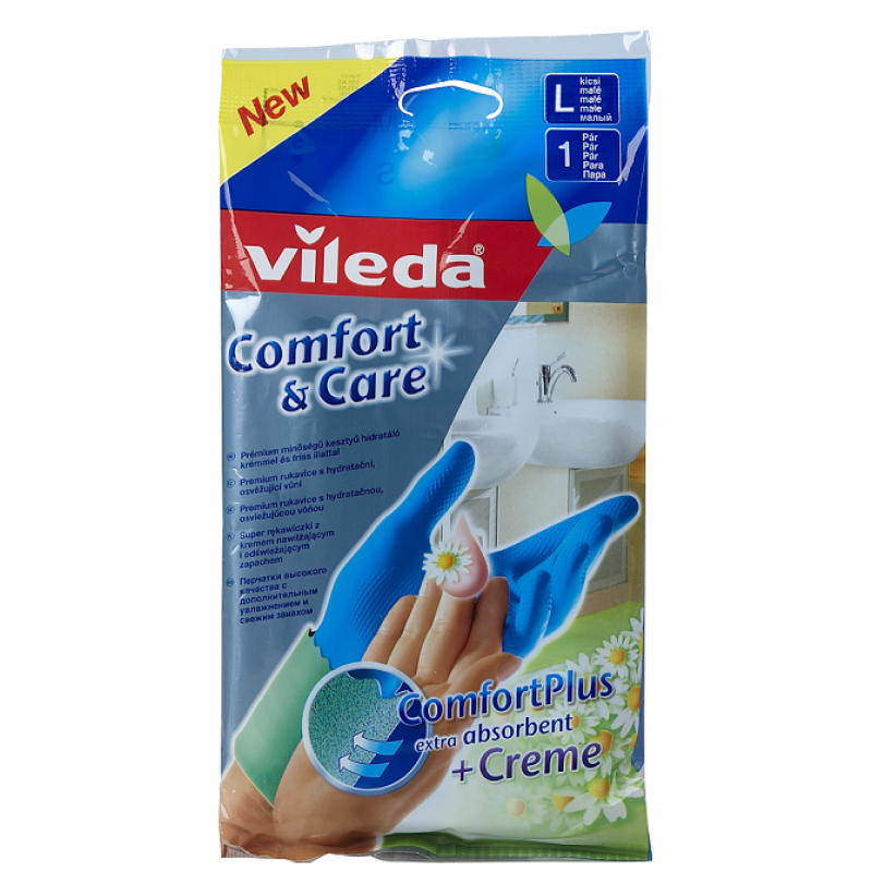 Перчатки Комфорт с кремом для чув. кожи рук, размер L, Vileda