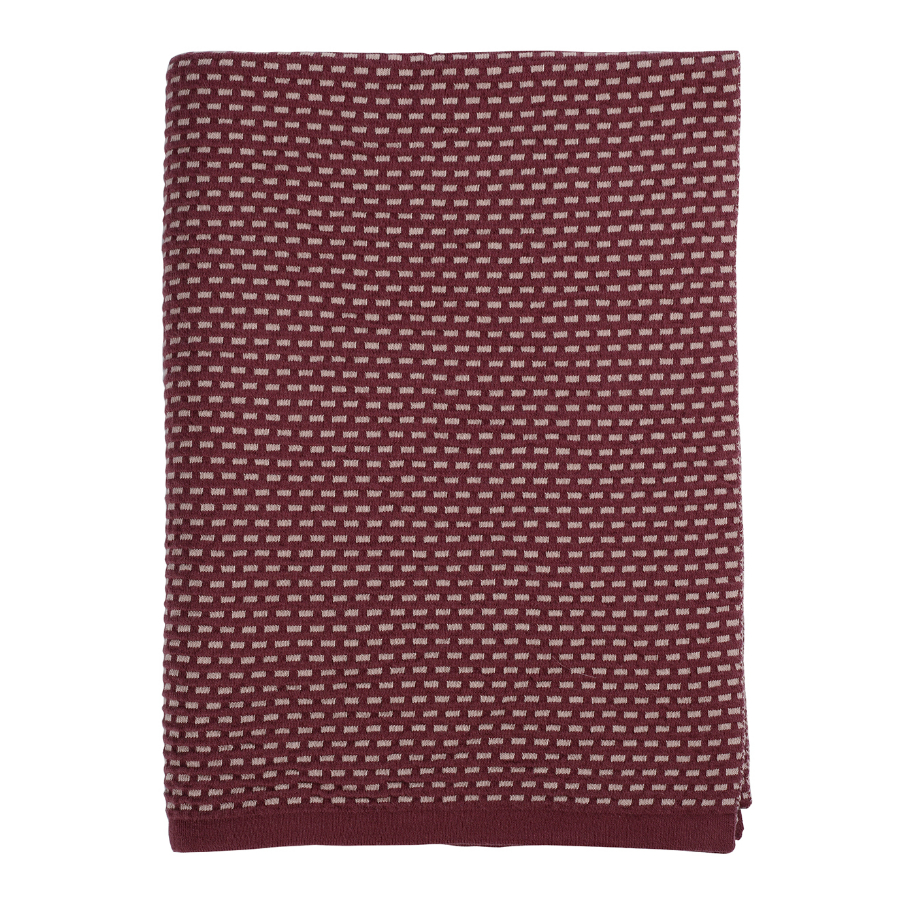 Плед из хлопка фактурной вязки бордового цвета из коллекции Essential, 130х180 см, Tkano