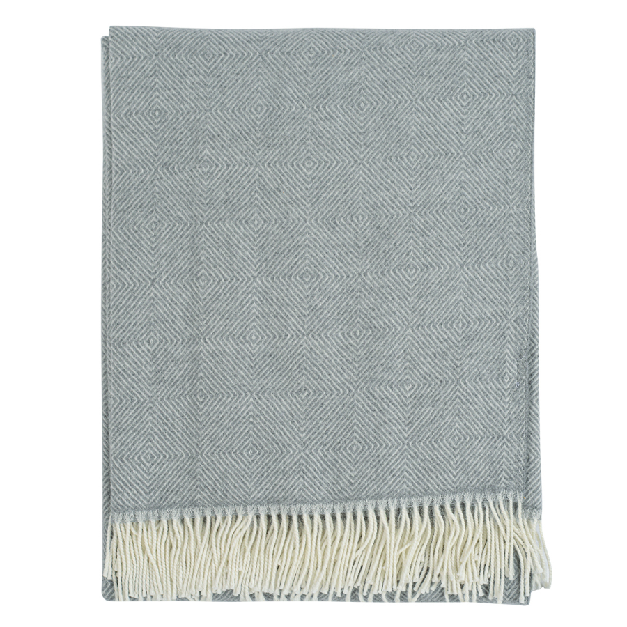 Серый плед с бахромой по краям украсили фактурным микроузором. Приятный на ощупь аксессуар выполнен из тонкой и при этом теплой шерсти мериноса. Такой материал мягче натурального шелка и в несколько раз эластичнее хлопка. Изделие упаковано в крафтовую коробку.