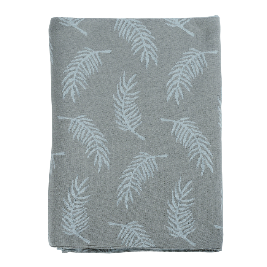 Плед вязаный с авторским принтом Fleshy Leaves серого цвета из коллекции Wild, 130х180 см, Tkano