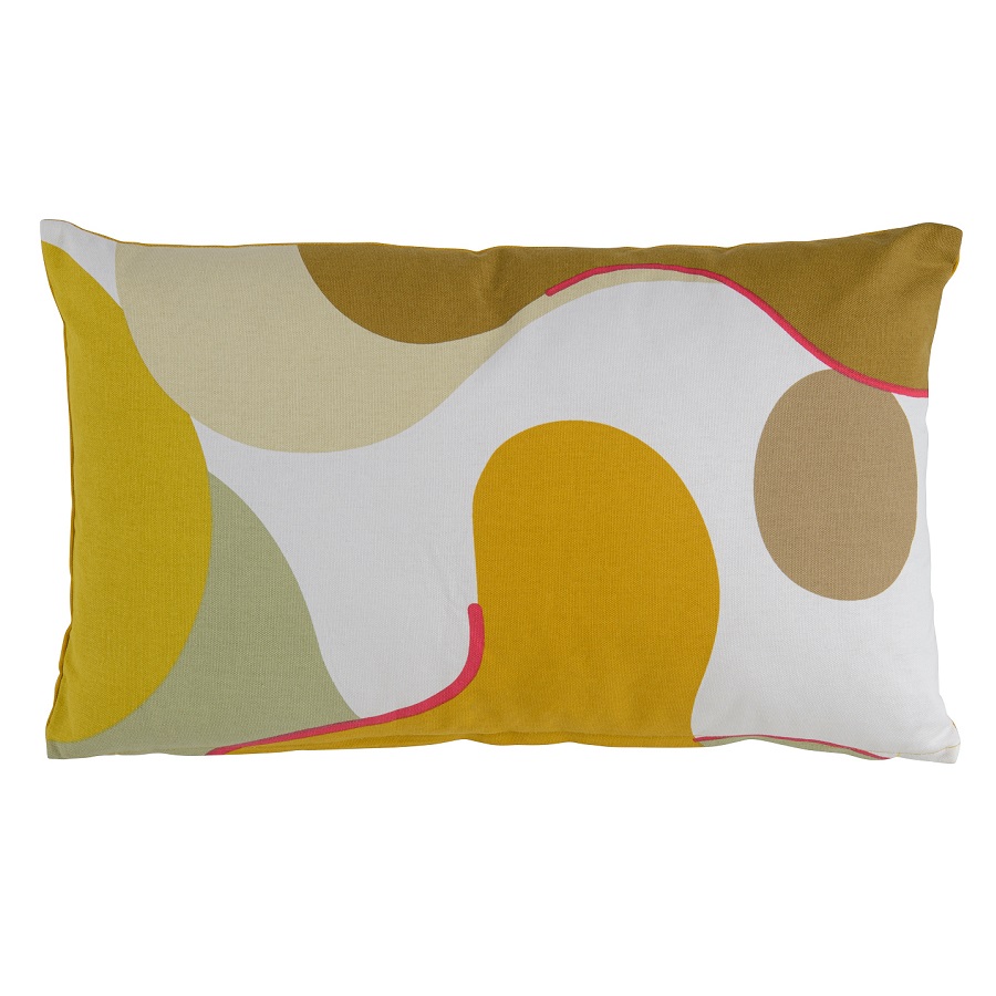 Подушка декоративная из хлопка горчичного цвета с авторским принтом из коллекции Freak Fruit, 30х50 см, Tkano