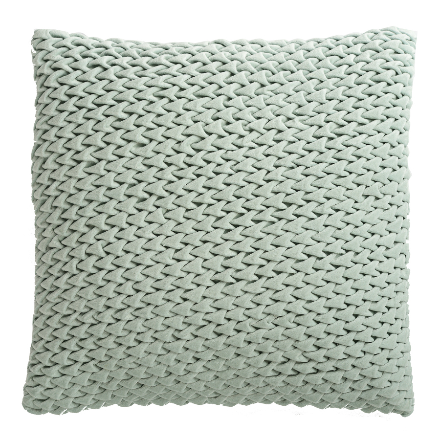 Декоративная подушка с фактурным стеганым узором выполнена из прочного хлопкового бархата. Нежный, приятный на ощупь материал не электризуется, не вызывает аллергию, и за ним легко ухаживать. За счет плотного наполнителя изделие мятного оттенка хорошо держит форму.