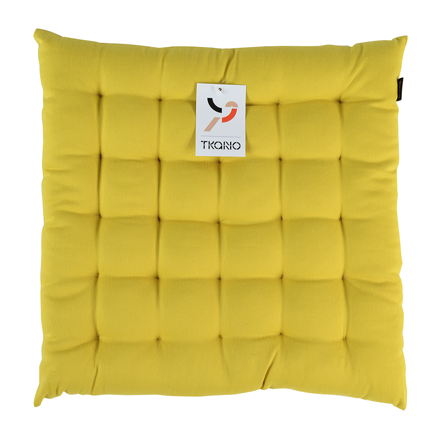 Горчичная подушка на стул выполнена из высококачественного длинноволокнистого хлопка. Такой текстиль отличается особенной мягкостью и прочностью. Благодаря плотному наполнителю из полиэстера изделие не потеряет свою форму.Тип плетения: твил. Плотность ткани - 215GSM.