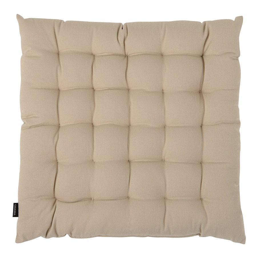 Подушка на стул из хлопка бежевого цвета из коллекции Essential – практичное и стильное украшение кухонной мебели. Однотонное изделие в лаконичном дизайне органично впишется в любой современный интерьер. Подушку можно использовать в качестве подкладки на деревянные или металлические стулья. Благодаря плотному наполнителю из полиэстера изделие не потеряет свою форму. , ,Плотность ткани - 215GSM.