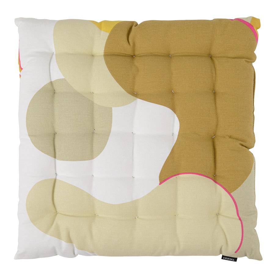 Подушка на стул из хлопка горчичного цвета с авторским принтом из коллекции Freak Fruit - , ,практичное и стильное украшение кухонной мебели. Принт создан Димой Логиновым - предметным дизайнером, известным в России и далеко за ее пределами. Абстрактная графика и сочетание сложных тонов — смелое решение для тех, кто любит экспериментировать с яркими красками и принтами в интерьере.