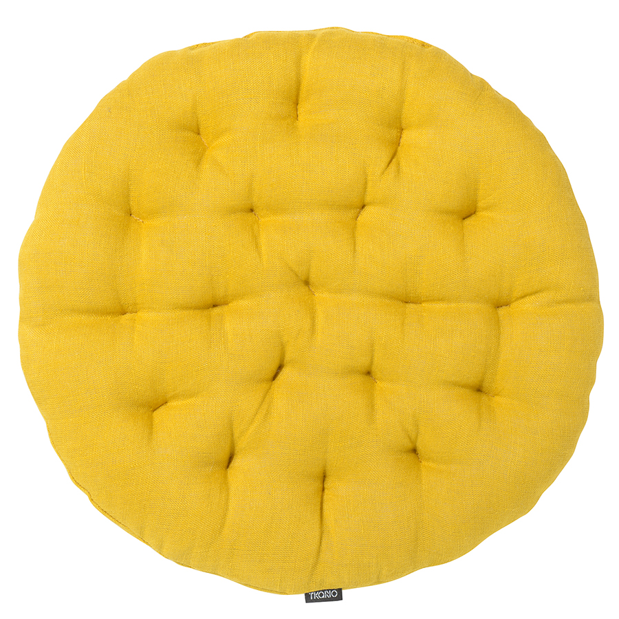 Подушка на стул круглая из стираного льна горчичного цвета из коллекции Essential, 40х40x4 см, Tkano