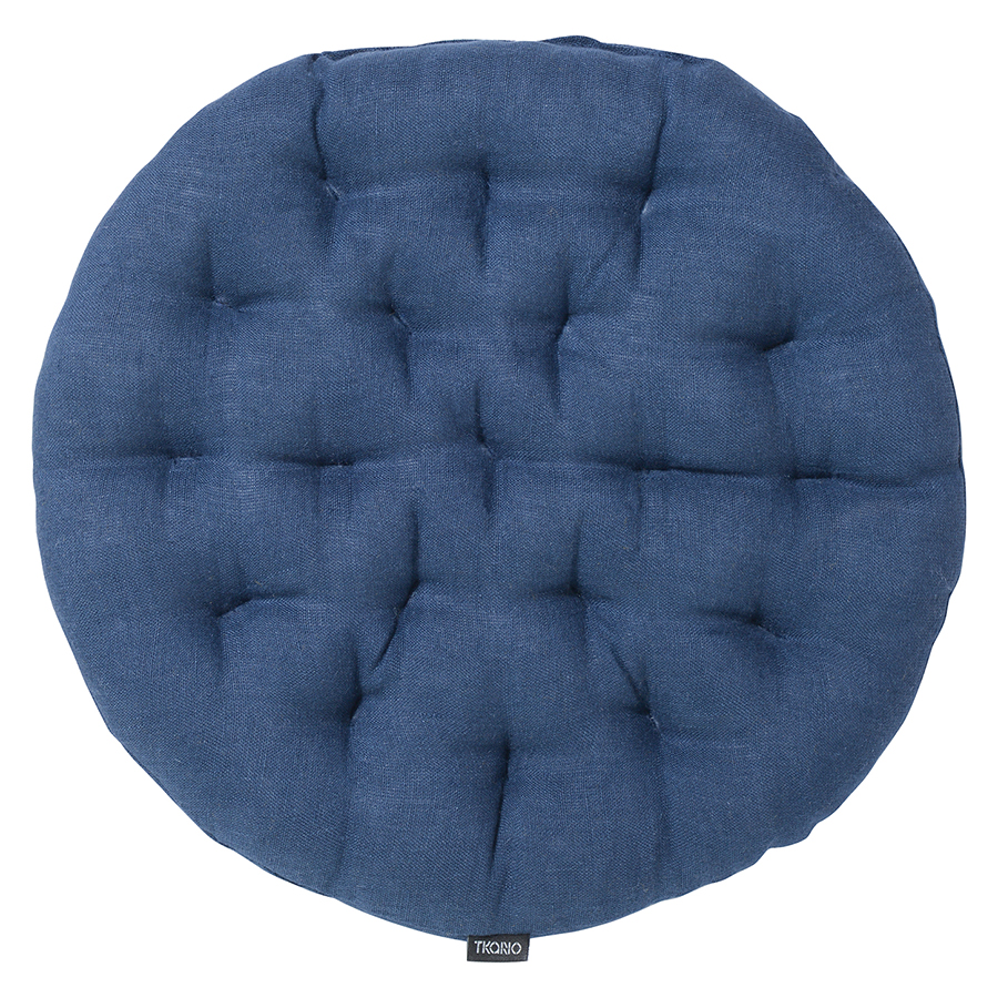 Подушка на стул круглая из стираного льна синего цвета из коллекции Essential, 40х40x4 см, Tkano