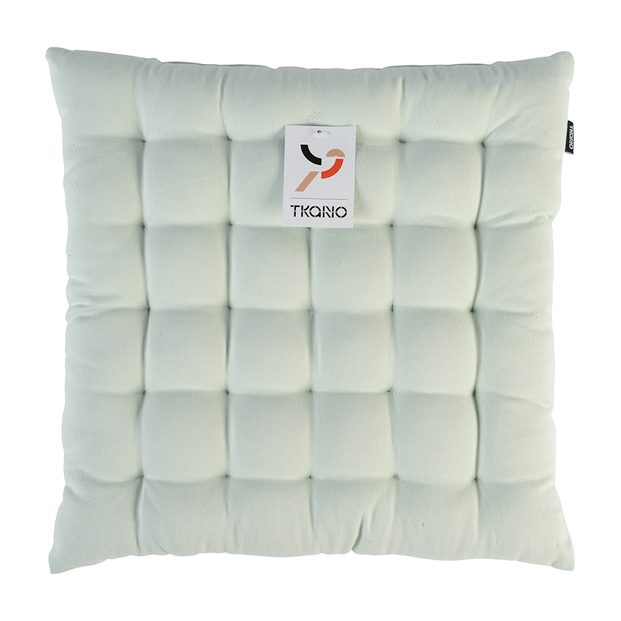 Мятная подушка на стул выполнена из высококачественного длинноволокнистого хлопка. Такой текстиль отличается особенной мягкостью и прочностью. Благодаря плотному наполнителю из полиэстера изделие не потеряет свою форму. Тип плетения: твил. Плотность ткани - 215GSM.