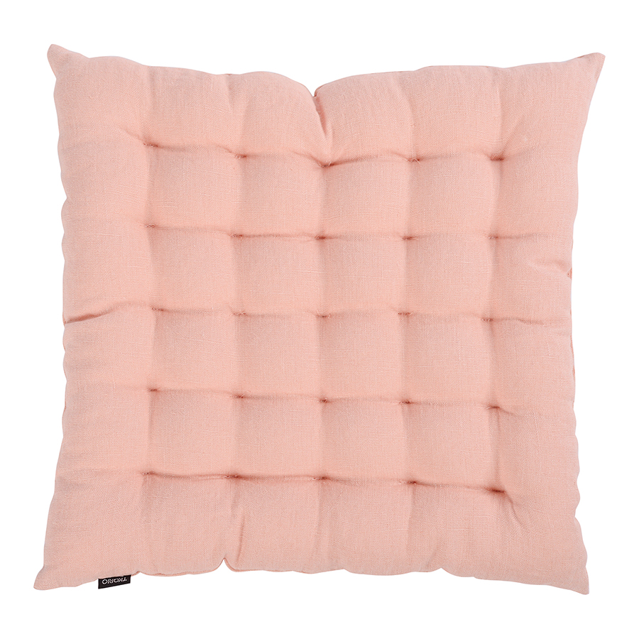 Подушка стеганая на стул из умягченного льна розово-пудрового цвета из коллекции Essential, 40х40 см, Tkano