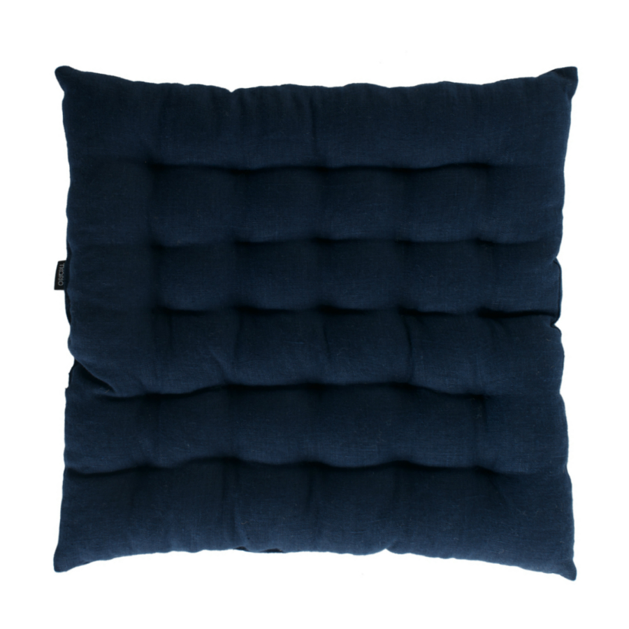 Подушка стеганая на стул из умягченного льна темно-синего цвета Essential, 40х40 см, Tkano