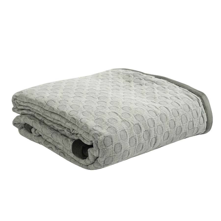 Покрывало базового серого оттенка выполнено из прочного стираного хлопка. Материал, обработанный по специальной технологии, более мягкий и нежный. Гипоаллергенное полотно хорошо пропускает воздух, не электризуется, и на нем не образуются катышки.