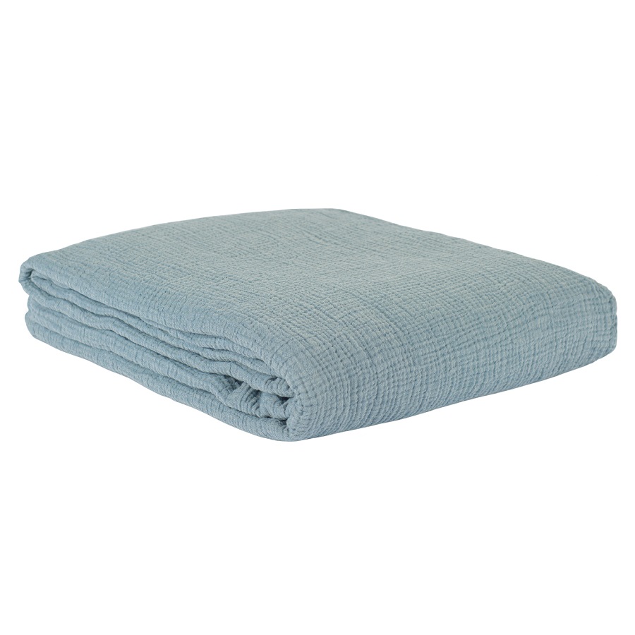 Покрывало из жатого хлопка джинсово-синего цвета из коллекции Essential, 180х240 см, Tkano