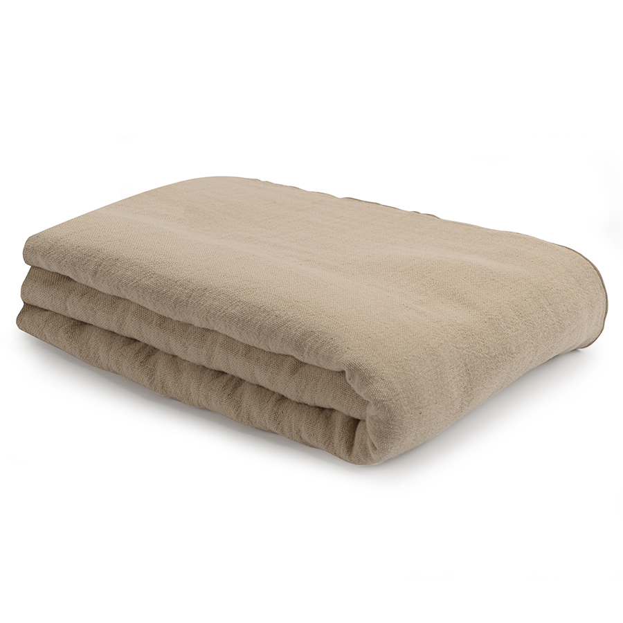 Покрывало легкое из хлопка бежевого цвета с контрастной каймой из коллекции Essential, 230х250 см, Tkano