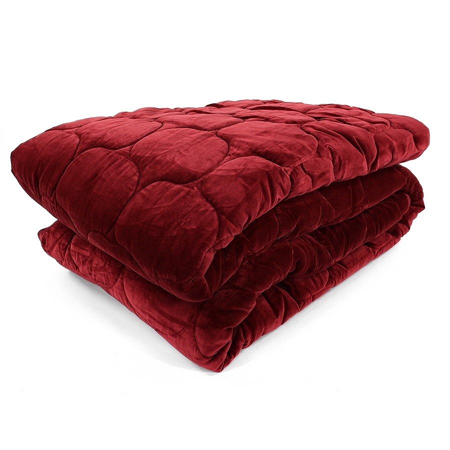 Покрывало стеганое бархатное Хвойное утро Цвет бордовый Russian North, 250х270 см, Tkano