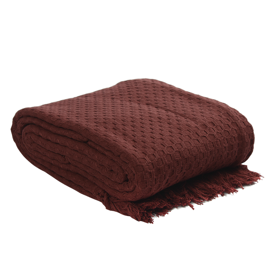 Покрывало вафельное бордового цвета из коллекции Essential, 230х250 см, Tkano