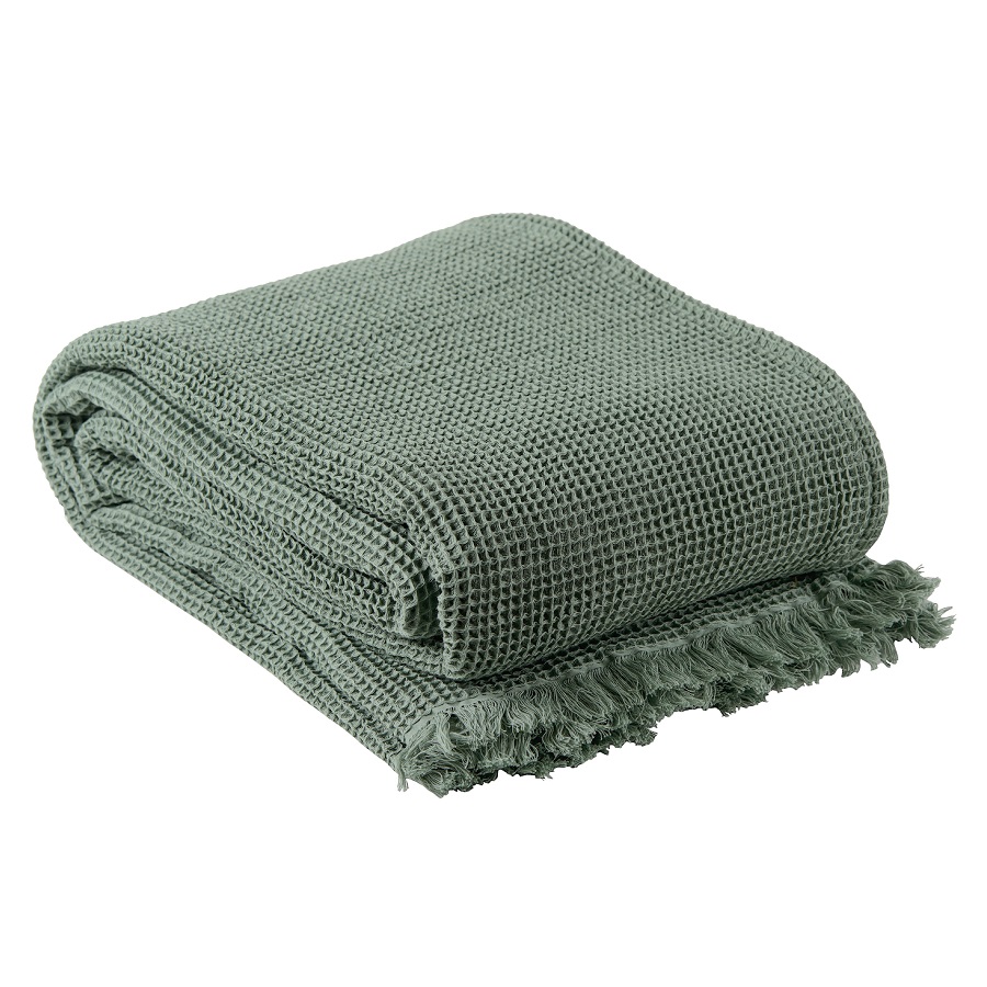Покрывало вафельное из хлопка мятного цвета из коллекции Essential, 230х250 см, Tkano