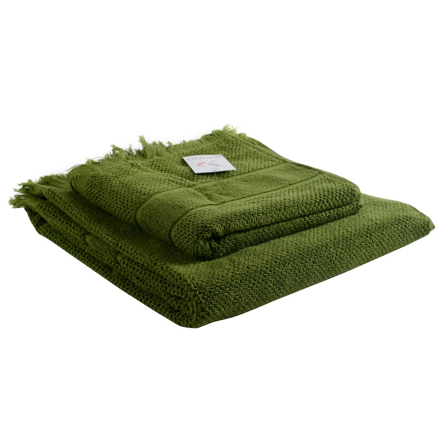 Полотенце для рук с бахромой оливково-зеленого цвета Essential, 50х90 см, Tkano